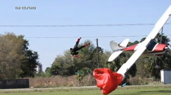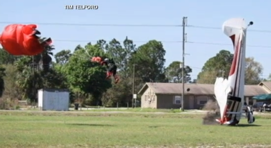 From the “Amazing That No One Was Killed” file, a small Cessna plane collided with the parachute of a landing skydiver, sending both falling objects for a loop.