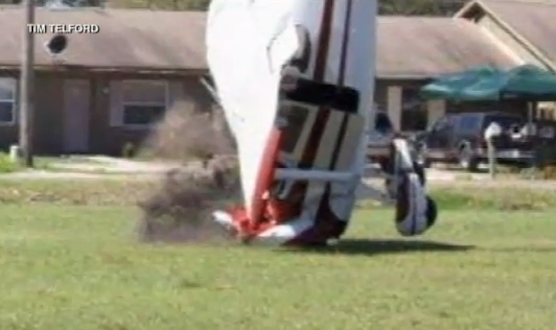87-year-old pilot Shannon Trembly was doing “touch and go” drills, in which a plane lands and then takes off, in his one-engine plane. Just as he lifted off from the ground, however, skydiver John Frost was trying to land himself. Trembly’s plane cut through the parachute, hurtling Frost across the field, before the plane crashed into the ground nose-first, and then went tumbling toward Frost, nearly crushing him.