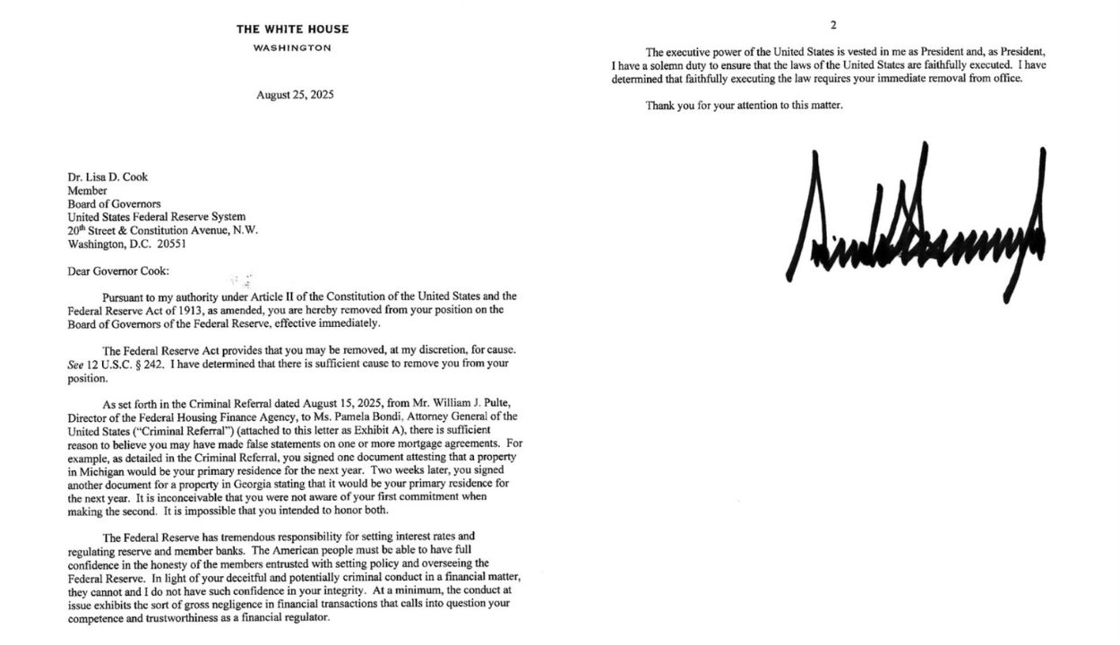 Cook, appointed under former President Joe Biden, has denied any wrongdoing and made clear she would not resign voluntarily.