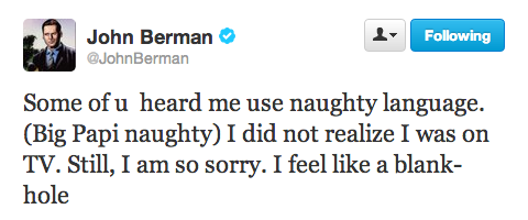 Berman acknowledged the error on Twitter, apologizing for using “Big Papi”-level profanity on air: