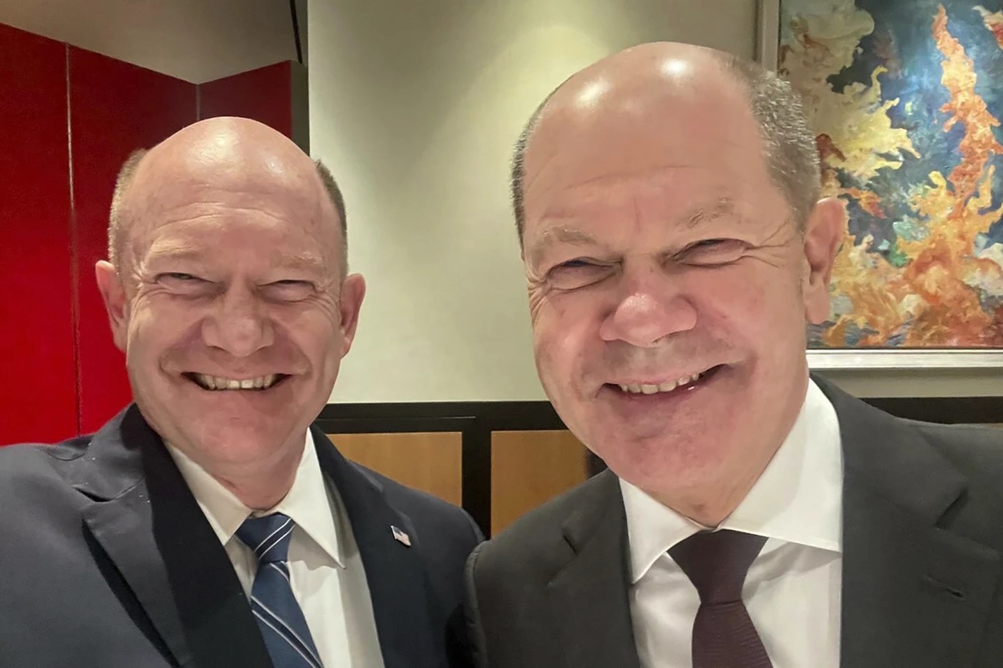 The Delaware Democrat and the leader of Germany’s coalition government share an uncommon likeness, right down to their bald tops and squinty smiles, which they showed off in a selfie taken by Coons on Thursday during Scholz’s trip to the American capital to encourage U.S. support for Ukraine in its ongoing war with Russia.