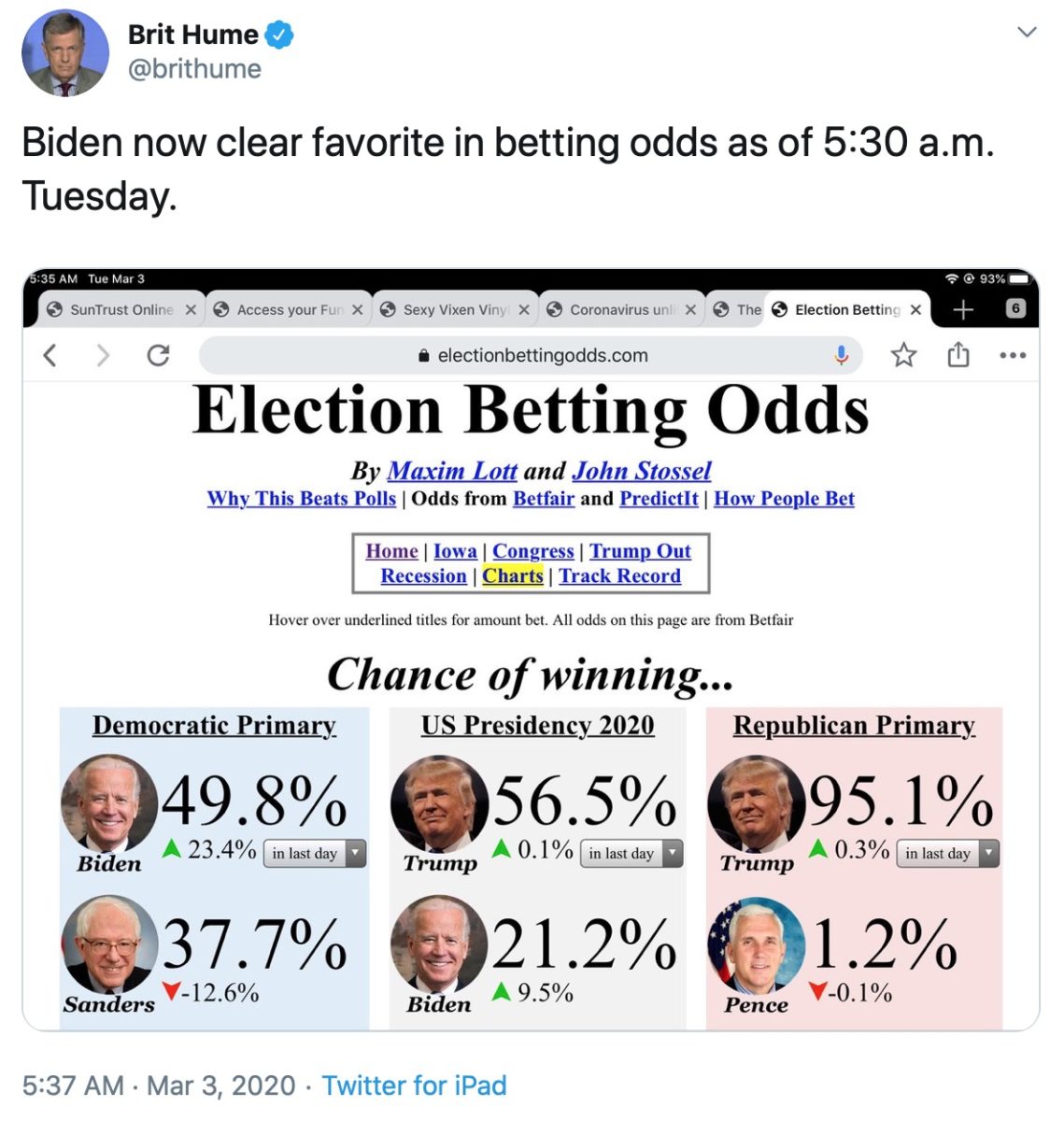 Biden now clear favorite in betting odds as of 5:30 a.m. Tuesday. pic.twitter.com/cmaIztNLlk