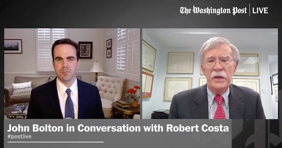John Bolton continued his media tour Tuesday with Washington Post reporter Robert Costa.