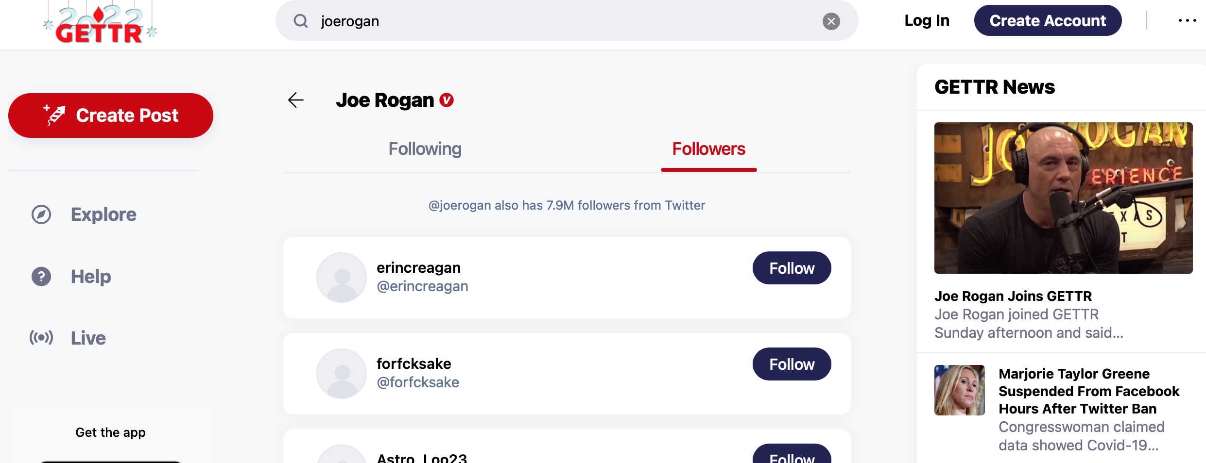 Given that disparity, you might be shocked to find that Gettr claims that Rogan has more than 8.3 million Gettr followers. That is about 400,000 more than the 7.9 million he currently has on Twitter.