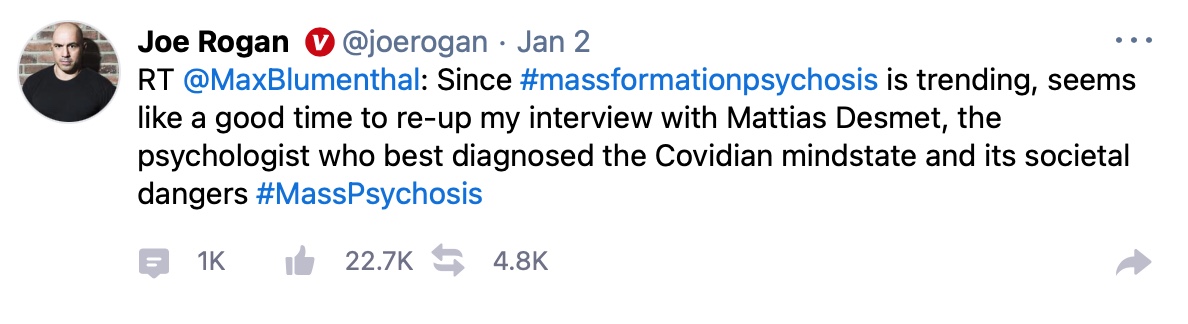 That tweet was automatically crossposted to Rogan’s Gettr account, where engagement surged to 1k comments, 4.8k reposts and 22.7k likes.