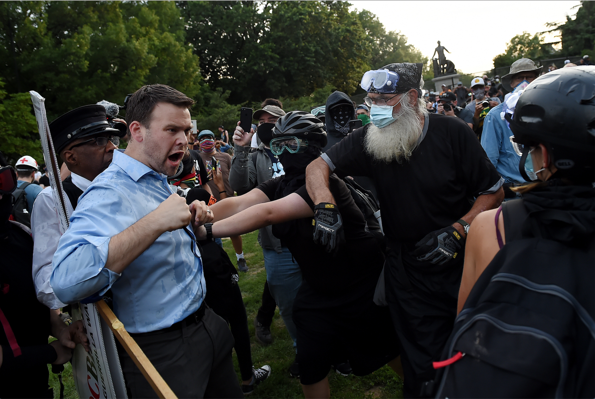OANN’s @JackPosobiec was here, definitely not someone the DC left scene appreciates. They chased him out of the park, blocking him from coming back towards it.