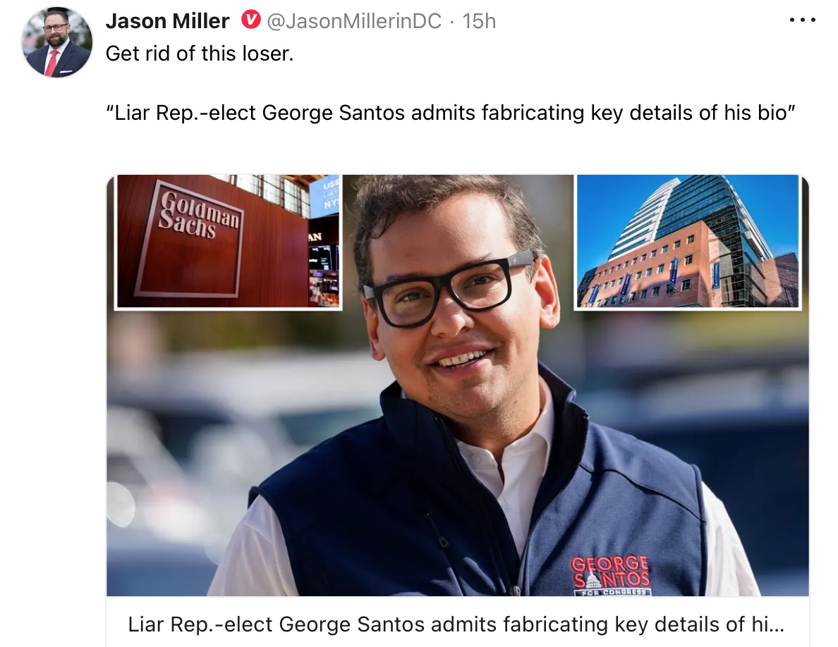 ‘Get Rid of This Loser’: Trump Adviser Jason Miller Calls on Republicans to Ditch George Santos Over Fake Life Story