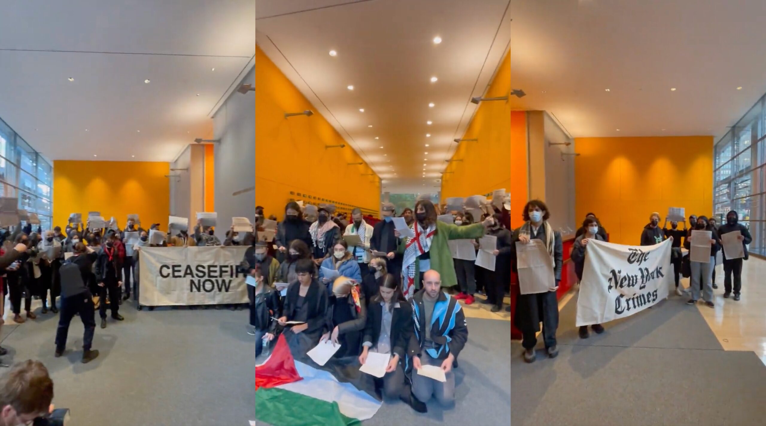 BREAKING: Media workers have taken over the lobby of the New York Times headquarters in NYC in protest of their biased coverage of Palestine.