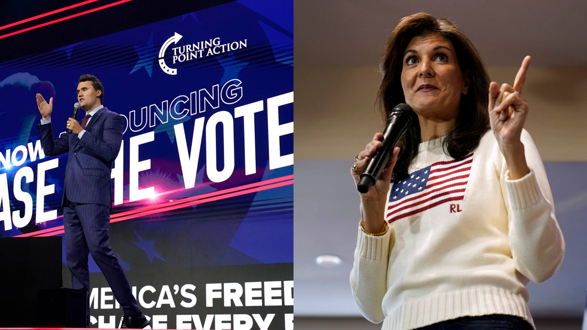 Left: Charlie Kirk (Lynne Sladky) Right: Nikki Haley (AP Photo/Charlie Neibergall)