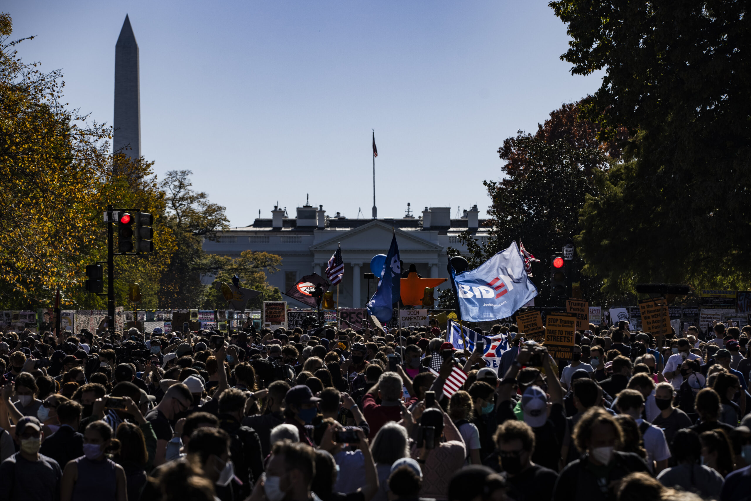 People gather outside the White House as Joe Biden is projected to win the US presidency.