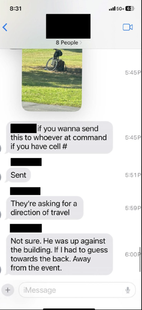 For more than 20 minutes, police scrambled to share information as they attempted to find the shooter. At one point, officers had trouble sharing photos of Crooks because “internet and cell service is down.” Messages about the spotty service were sent around 5:47 p.m.