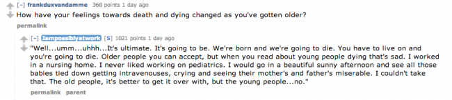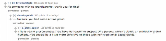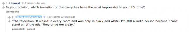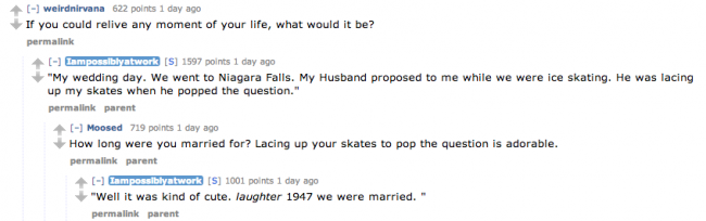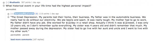 A 90-year-old grandmother signed on to Reddit Friday morning and held an AMA—Ask Me Anything—with the help of her grandson, who typed her answers onto the website. The unnamed woman answered questions on everything from the Great Depression to her nine decades of accomplishments and regrets, and even how own mortality. Her grandson posted the image to the left as proof, and parried with the commenters with good humor. Check it out: