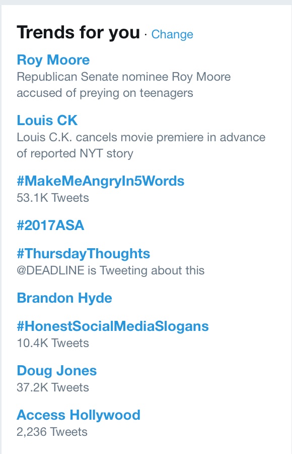 ‘Access Hollywood’ Trends On Twitter in Wake of Roy Moore Bombshell: Will GOP ‘Draw The Line’ on Minor?
