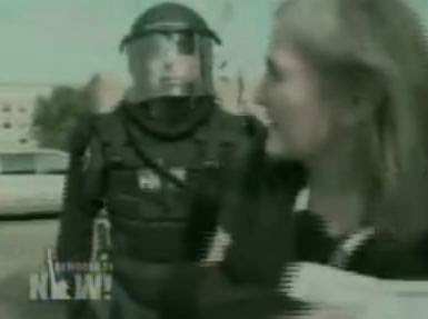 Why Goodman? Well, she speaks up loudly, that’s for sure. Her latest book, Breaking The Sound Barrier, is described on the Democracy Now site like so: “Amy Goodman breaks through the corporate media’s lies, sound-bites, and silence.” She was also arrested at the 2008 Republican National Convention in St. Paul, for the apparently lawless act of inquiring after her other colleagues who had been arrested. All of them were duly credentialed for the convention. The video of Gooman’s arrest blew up on YouTube, shocking as it was to see her manhandled and cuffed by an officer with a billy club. One can hardly hold that against her, however; so it’s odd to imagine what triggered the border guards — unless her reputation, or name on some list, preceded her.