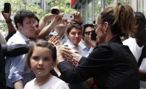 Is it too outrageous to ask why this little girl is not in school, rather than acting as a media bouncer for her mother on a publicity/campaign tour?
