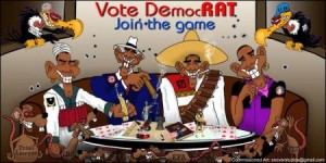 A new billboard targeting President Obama ups the ante on previous efforts, placing the Commander in Chief in a poker-themed ad that plays every card in the deck against him, including the Antichrist card. Gay Obama, Bandito Obama, Pimp Obama, and Suicide Bomber Obama compete in a weird game of 3-card stud in which they each display trip sixes.