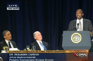 Pediatric neurosurgeon Ben Carson burst onto the national political scene just over one year ago after he famously delivered an address at the National Prayer Breakfast with conservative themes. That message, delivered alongside President Barack Obama, reportedly offended the president and his staff, Carson reveals in his new book. The conservative icon says that, while Obama did not appear outwardly upset by Carson’s speech, the White House made it clear to him that the administration was.