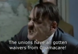 Well, in the video Friess shared, Hitler rants about losing his doctor, how Obamacare is much worse than “ReichCare,” and Obama saying he’s “sorry” to everyone whose experience with the law has been less than pleasant. It’s the kind of video you’d expect from a meme meant to convey a political message.