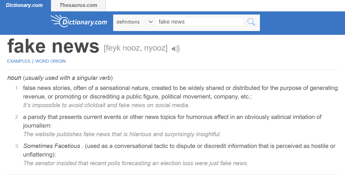“Fake news” was added to Dictionary.com. The Collins Dictionary named it the Word of the Year for 2017. It’s everywhere.