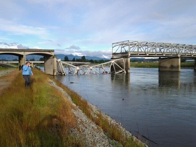 A bridge has collapsed near Seattle, Washington over the Skagit River. Washington State Patrol has confirmed, and a number of news organizations are reporting, that at least two cars with people trapped inside are in the water.
