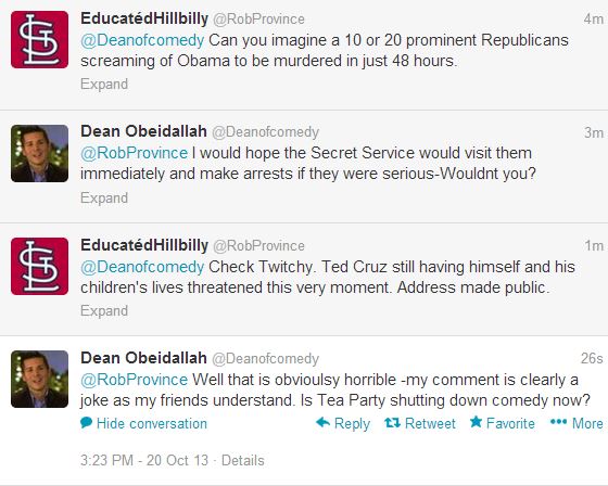 “My comment is clearly a joke as my friends understand,” Obeidallah said in his defense. “Is Tea Party shutting down comedy now?”