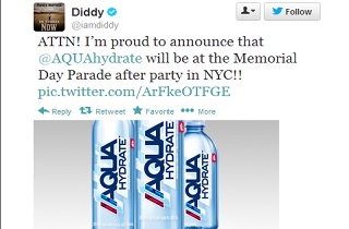 Rap mogul P. Diddy/Diddy/Puff Daddy/Puffy/Sean Combs showed his patriotic spirit. Sort of. The colors of his Aqua Hydrate fitness water, which he plugged as the beverage of choice this Memorial Day weekend, are red, white, and blue.