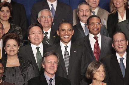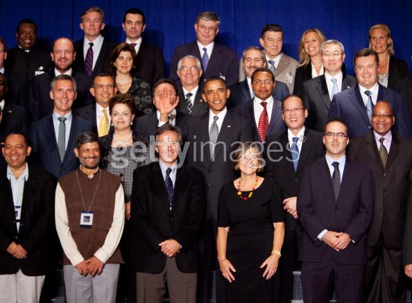 An alleged photo of President Obama reportedly taken yesterday has started to make the rounds. No, it’s not another Obama halo pic, but rather it shows the president striking an embarrassing pose. While standing with other leaders during an Open Government Partnership event, Obama can be seen waving to the camera. The only problem? He’s the only one — and he‘s covering another man’s face.