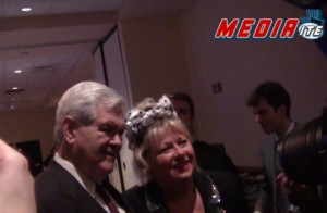 Here’s the video from Thursday afternoon. I’ve also included some pre-roll of Gingrich pressing the flesh, and getting his photo snapped with former SNL-er Victoria Jackson:
