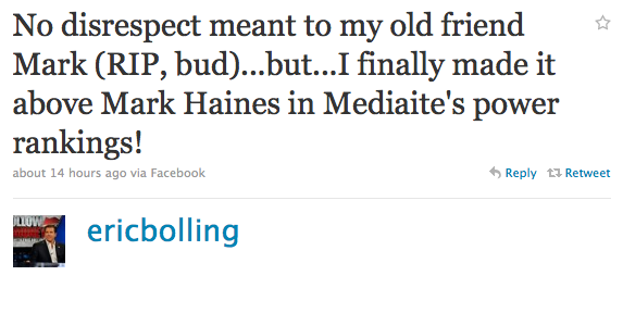 Creepy: Eric Bolling Publicly Celebrates His Outranking Of Deceased Mark Haines On Mediaite’s Power Grid