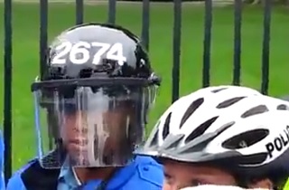 As we reported earlier, a protest that started at the World War II Memorial ended up in front of the White House, where protesters piled up barricades that had been used to keep people out of the memorial during the government shutdown. Police, some in riot gear, were called in, and while news reports showed some of the confrontation, raw Youtube video of the protest reveals members of the crowd heckling the officers, calling them “brown shirts,” the “Gestapo,” the “Stasi,” and opining that the unit “looks like something out of Kenya.”
