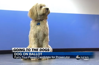 His owner, University of Washington assistant professor Frank James, mounted a write-in campaign to get Nyima on the ballot for today’s primary, and according to the Bellingham Herald, needs only 1% of the vote to be listed on the general election ballot in November. “It’s for fun, but also to make a point,” James told ABC. “Our current prosecuting attorney has had no opposition in the past 10 terms. It’s time for other people to think about running.”