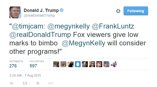 Donald Trump got back at Fox News host Megyn Kelly for asking him about past sexist comments by… retweeting a fan calling her a ‘bimbo.’