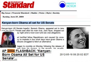 If you needed any further evidence of what liars some of these right-wingers are, look no further than this. Drudge issued no correction, and disappeared it from his site, but it still exists on other sites that archive Drudge’s feed. Gateway Pundit’s Jim Hoft at least had the relative decency to add a tiny update at the bottom of his post which read “The headline was added by a Kenyan paper,” while keeping his own headline: “AP 2004 FLASHBACK: ‘Kenyan-Born Obama All Set for US Senate.'”