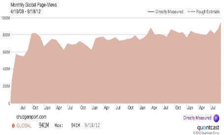According to Quantcast data, Drudge Report claims that it has reached nearly a billion page views over the last 31 days. This marks the first time that has happened in the website’s 17-year history.