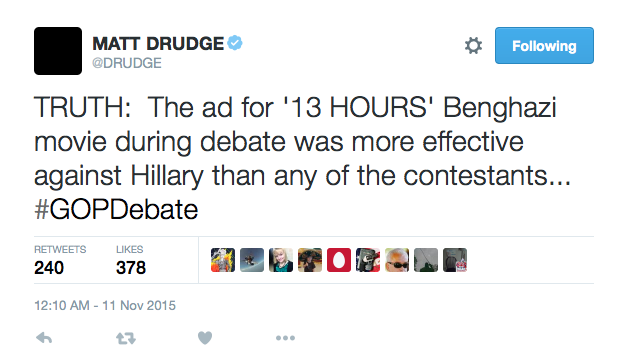 Drudge Slams GOP Debate: Benghazi Film Trailer Did More to Attack Hillary