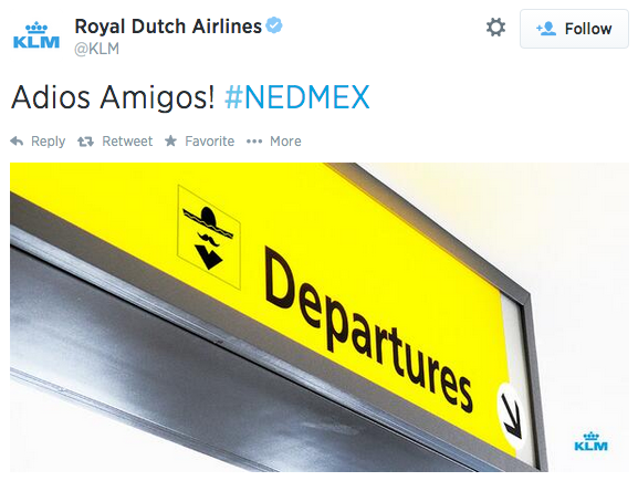 For those of you following the World Cup (90 percent of the world, basically), you know that the Netherlands beat Mexico earlier today. And because soccer inspires such strong nationalism and over-the-top rivalries, here’s how one Dutch airline reacted on Twitter today.