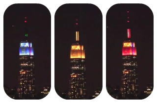 Normally the building’s top section is illuminated with colors that indicate a particular event or person — i.e., on St. Patrick’s Day, you’ll see green and white; on Christmas, red and green; and when the Yankees are in the World Series, you’ll see blue and white. For election night, the building was famously used to display real-time election results. But this new light show uses those 16 million colors to create a truly mesmerizing light show.
