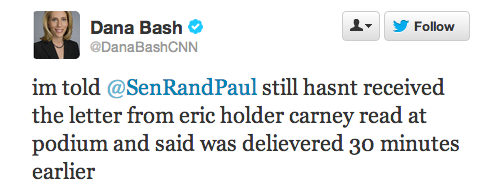 CNN’s Dana Bash later tweeted that Paul had not yet received the letter that Carney indicated had been delivered: