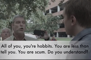 “You went to my house, you terrorized my wife, you’re violating federal law, you’re trespassing, you’re a nasty little cowardly spud,” Letten excoriates the filmmaker. “All of you, you’re hobbits. You are less than I can ever tell you. You are scum. Do you understand?”