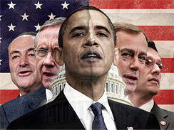 As one can see, the darker Obama is on the left with the Democrats, and the lighter Obama is on the right with the Republicans.