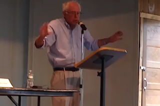 As members of his audience began to shout out their opposition to his statements, Sanders responded, “Excuse me! Shut up! You don’t have the microphone.”