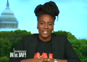 Yates also spoke out about the Oval Office meeting on Democracy Now! today. She said she and the other activists told the president “there is no reason that our local law enforcement should have military weapons” as if they’re fighting terrorists instead of protesters.