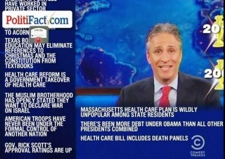 This topic makes the list for two reasons: Jon Stewart is certainly not the first nor last one to make it, and calling it out may have been the beginning of the end for Politifact. As recent history has taught us, entities that dare challenge Stewart, rightfully or otherwise, rarely fare well shortly after that. Politifact was correct in pointing out that Stewart’s claim to Fox News’ Chris Wallace that Fox News viewers were more consistently uninformed than other news watchers was incorrect– at least at the time they did so (as explained below, this may not be true now). Stewart even went as far as to admit it– not, of course, without pointing out the laundry list of corrections Politifact bothered to gather from Fox News, but still went out of his way to apologize to the organization. To use Politifact’s terminology on the Democrats’ health care story, while some reserved themselves to pointing out corrections the network should have made on stories, “more often, Democrats and liberals overreached.”