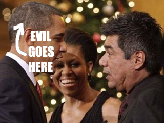 The Daily Mail piece collects some theories from bloggers who noticed an odd pattern in Obama’s hair in pictures of he and George Lopez. Not content to ask the obvious questions (when and why Obama was hanging with George Lopez in the first place?), the bloggers dug deeper and realized that the hair pattern was clearly a scar from brain surgery.