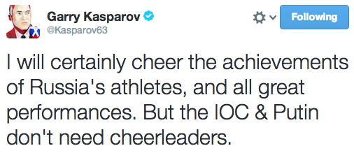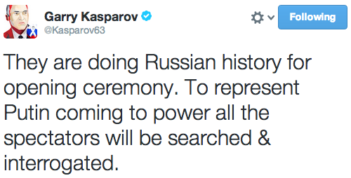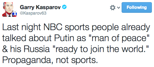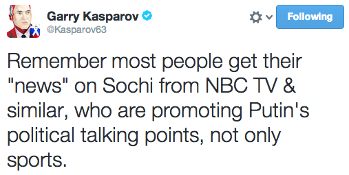 After some jabs at the International Olympic Committee for deciding to hold the Games in Russia in the first place, Kasparov took on NBC for acting as de facto Putin mouthpieces.