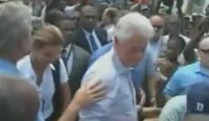 George W. Bush Wipes Hand On Bill Clinton’s Shirt, After Meeting Haitians