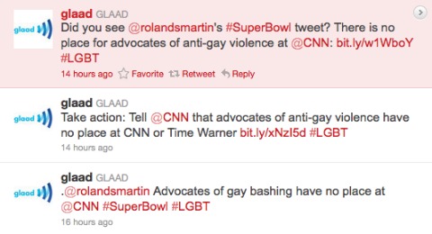 The Gay & Lesbian Alliance Against Defamation (GLAAD) has called out columnist and CNN contributor Roland Martin for a Tweet he sent during last night’s Super Bowl.