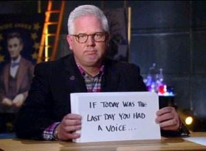 Glenn Beck recently discovered that his vocal chords have been temporarily paralyzed, and so, on his show today, he delivered an emotional monologue without uttering a single word, with the aid of music and flashcards with words of inspiration written on them.