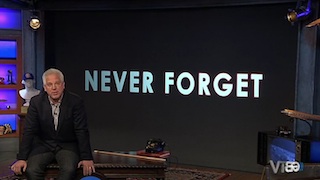 Now, when I say that the show looked just like his old show, I also meant that as a compliment to all of the technical aspects. If there’s one thing I can say, this certainly didn’t look like a “web series.” The set was huge and filled with all sorts of flashing technical doo-dads (including, yes, the three-sided chalk board). And while there were a few hiccups (the staging of a segment involving a number of 9/11 first responders was awkward, Holmes looked a little uncomfortable when the cameras kept her in frame during the first clip she threw to, and the show kept doing this weird split screen thing that seemed unnecessary), there were no more than any other live TV show.