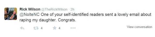 Hilarious public meltdown: THEY'RE THREATENING TO RAPE MY DAUGHTER! http://t.co/rTYn8QRDgW #RickWilsonIsAGirlInAPinkPartyDress